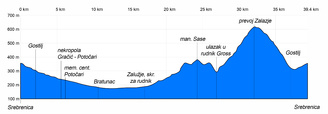 U drugom delu spusta ima serpentina i put je nešto strmiji, 9-10%. Na 36,6 km od starta počinju prve kuće u naselju „Vidikovac“ a na 37,4 km u Gostilju ponovo izlazimo na poznati glavni put Srebrenica – Bratunac. Sada ćemo ovde skrenuti levo, i posle 2 km blagog uspona eto nas ponovo u Srebrenici, na tački sa koje smo i krenuli na turu.